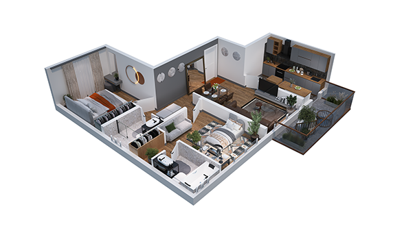 • Wir erstellen 10 gerenderte Innenvisualisierungen der Immobilie aus den Grundrissvorlagen