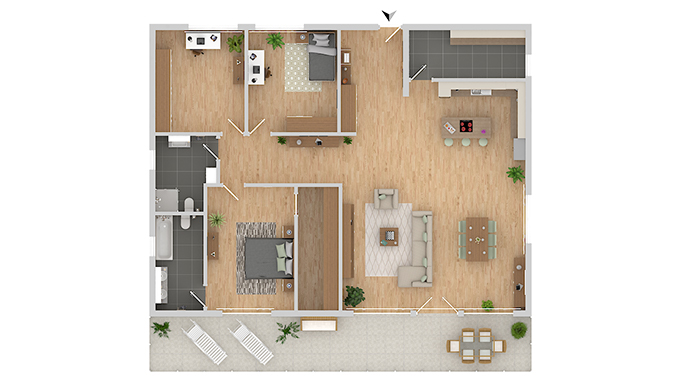 • Gerenderter 360° Rundgang aus einer Grundrissvorlage
