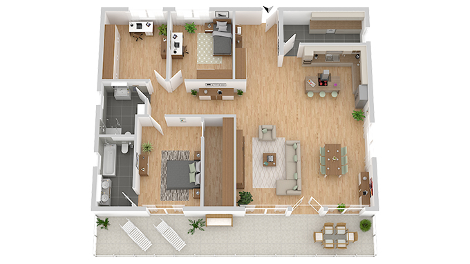 • Gerenderter 360° Rundgang aus einer Grundrissvorlage